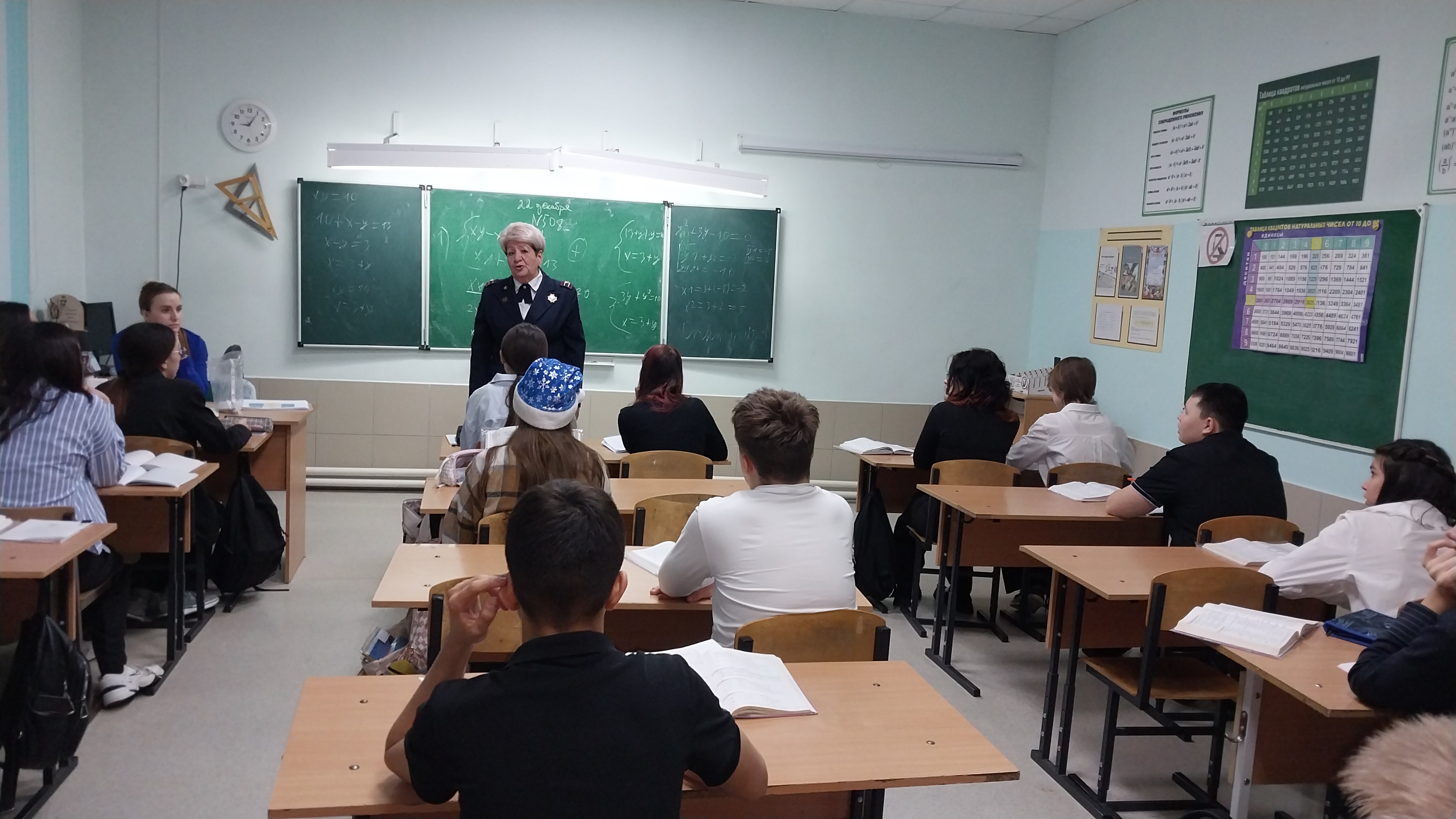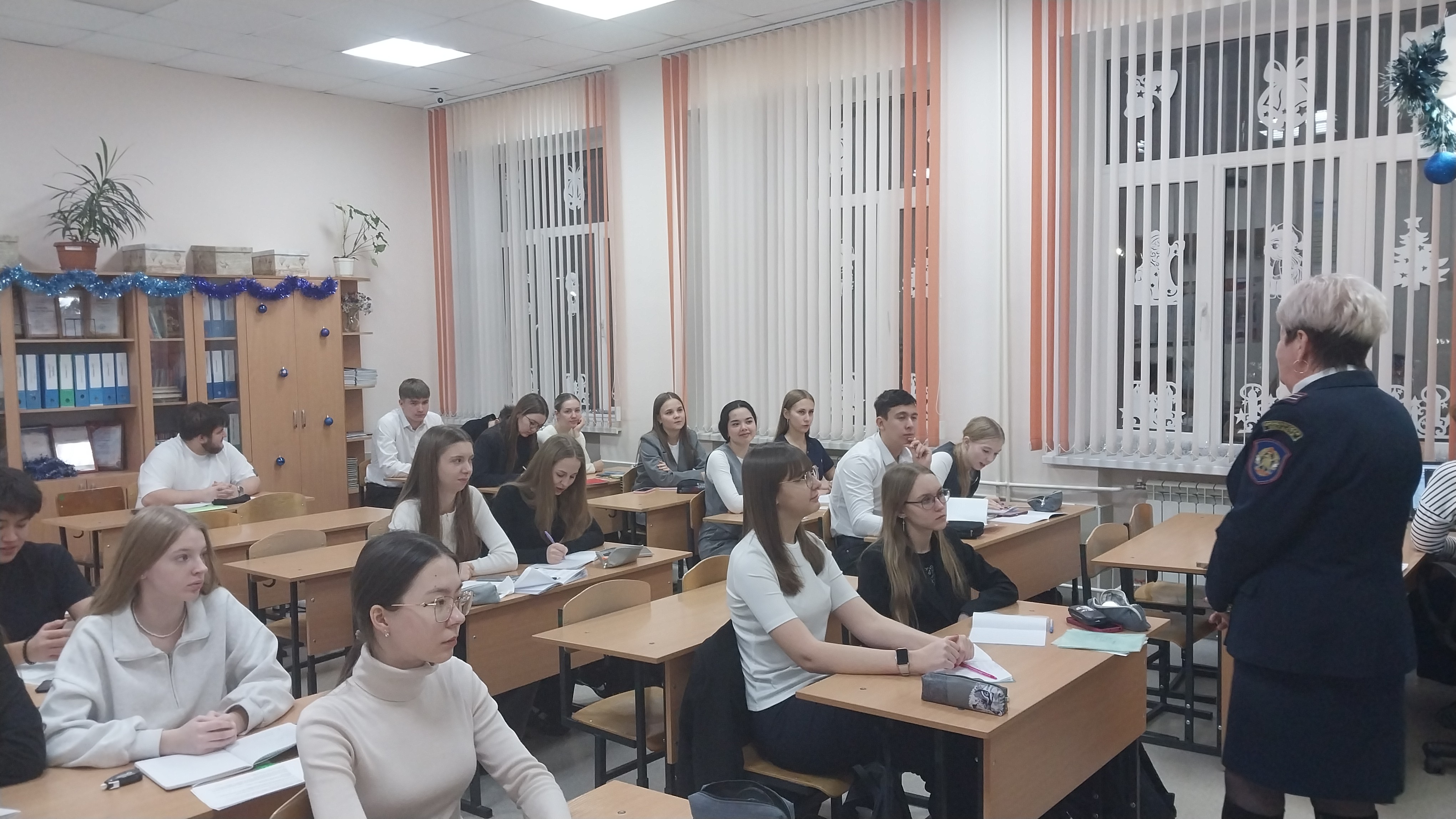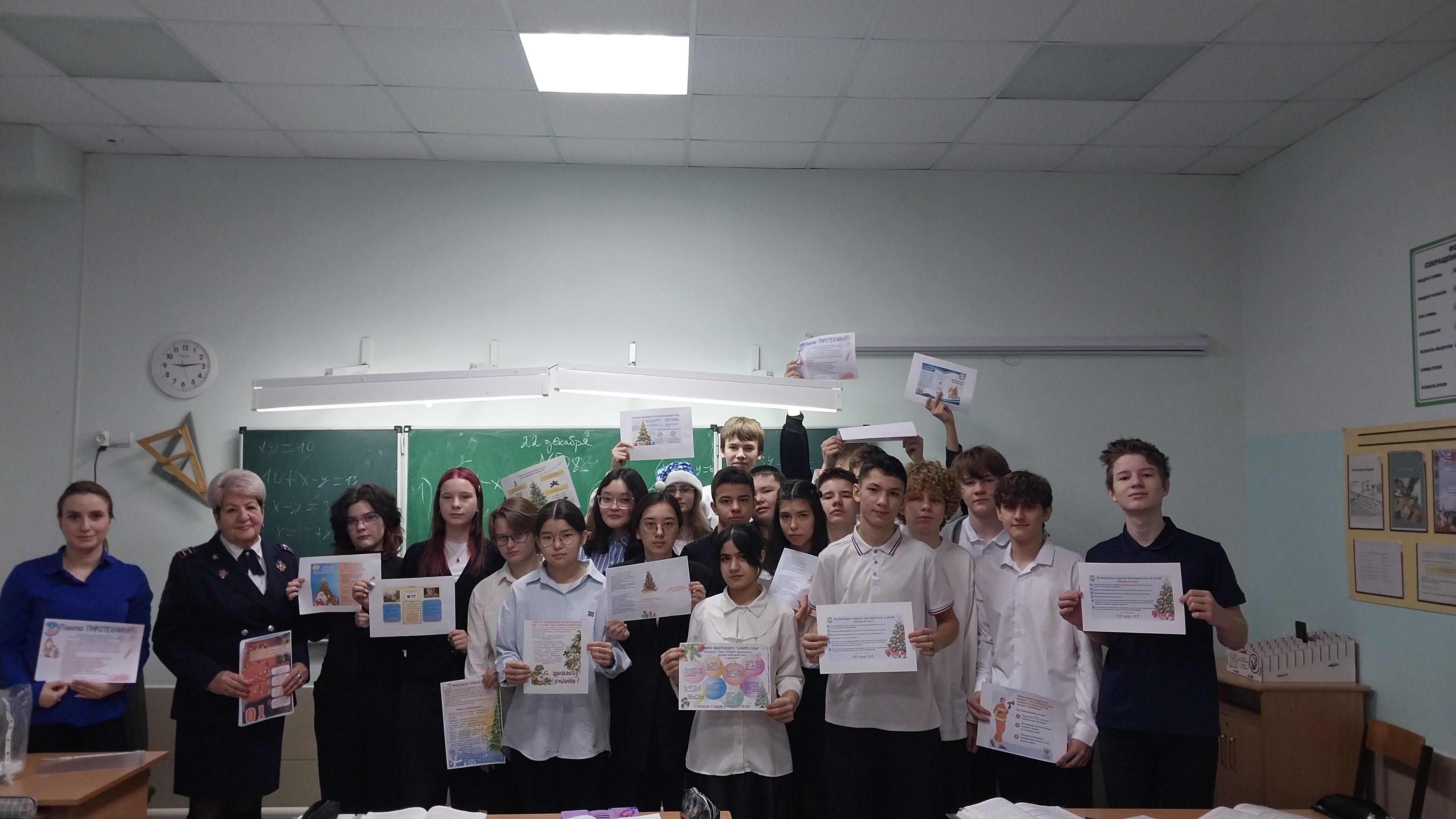 Надежда Александровна поздравила всех с наступающим Новым годом и напомнила обучающимся и педагогам о коварных опасностях в этот праздник в виде огней, фейерверков, петард елочных игрушек, которые могут стать причинами серьезных травм и болезней. Надежда Александровна ещё раз напомнила о правилах пожарной безопасности во время новогодних каникул, раздала памятки и буклеты.