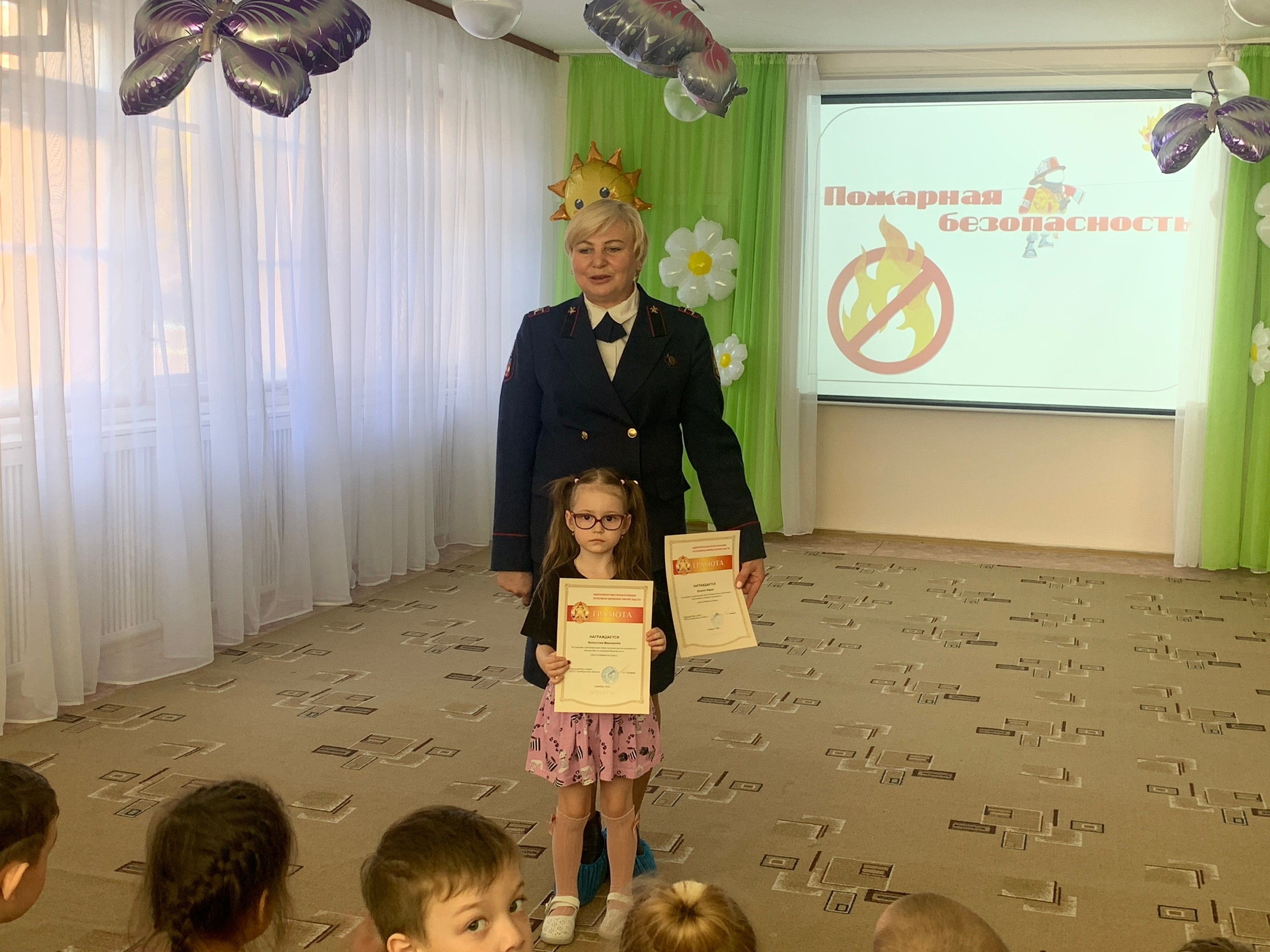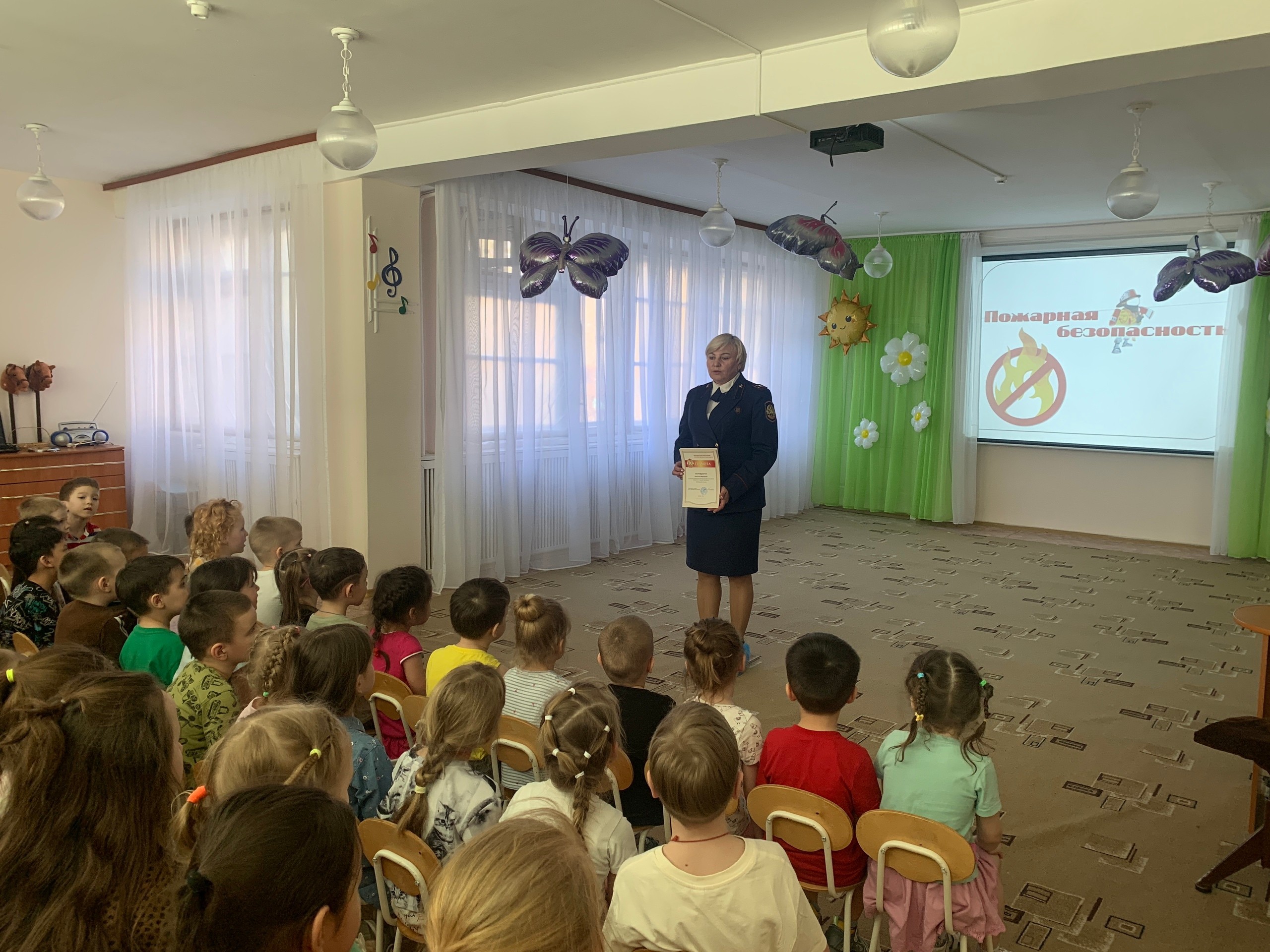 Детям была показана презентация. Инна Геннадьевна рассказала ребятам о важности пожарной безопасности, объяснив основные правила безопасного поведения дома, на природе и в детском саду.